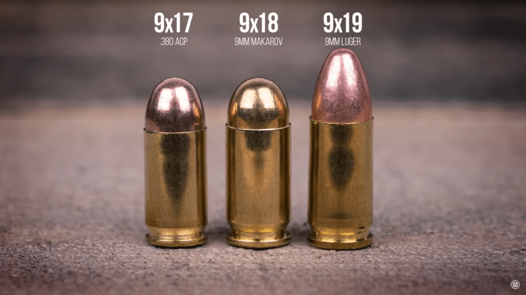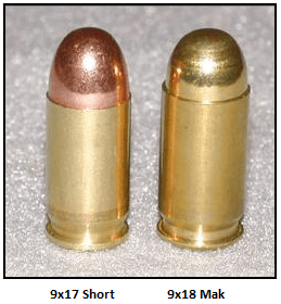 9x18mm / 9mm Makarov / 9x18mm PM este un cartus cu peretele drept, fara rama, pentru pistol si pt pistol-mitraliera (submachinegun), dezvoltat dupa al doilea razboi mondial in Uniunea Sovietica. Atat cartusul cat si pistolul ce a fost dezvoltat in paralel (numit Makarov PM, vezi poza mai jos) au inlocuit pistolul si calibrul 7.62x25mm Tokarev (despre Tokarev vom discuta in partea a IV-a). Presiunea maxima dezvoltata de ~24.000 psi face ca acest calibru sa poata fi folosit in pistoale de tip blowback, acestea fiind mai usor si mai ieftin de realizat. Impreuna cu 380 ACP sunt cam maximum ce se poate folosi in pistoale de tip blowback fara a avea un pistol mult prea mare si greu (cum este High Point-ul in 9x19mm). Inspiratia acestui cartus a fost 9×18 Ultra, un cartus dezvoltat in Germania in perioada interbelica. Teoretic trebuia sa concureze cu 9x19mm, dar ca si energie dezvoltata si potential balistic el este mai apropiat de 380 ACP decat de 9x19mm.