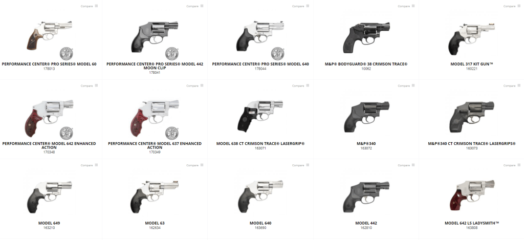 Astazi J frame / J magnum frame (pe scurt J frame) pare sa fie cea mai raspandita platforma in productie. Daca filtram pe site-ul oficial modelele de revolver dupa aceasta platforma gasim peste 60 de modele, majoritatea cu teava de 2 inch sau sub 2 inch, si aproximativ 10 modele cu teava intre 2 si 3 inch. Platforma se evidentiaza printr-o capacitate de 5 cartuse (38 Special / 357 Magnum). O alta caracteristica este ca manerul este de obicei destul de mic si incap doar doua degete pentru a-l cuprinde. Exista totusi si manere mai mari pentru a-l putea cuprinde cu toate cele trei degete, “full grip“. Revolverele J frame sunt foarte populare pentru concealed carry atat ca arma principala, dar si ca arma secundara. Sunt atat de mici incat se pot purta IWB (inside the waist band – tocul sub centura) sau chiar si in buzunar sau pe glezna. In competitiile de tip IDPA exista chiar si o (sub)divizie speciala BUG-R (Back-up Gun – Revolver) unde J frame este foarte popular.