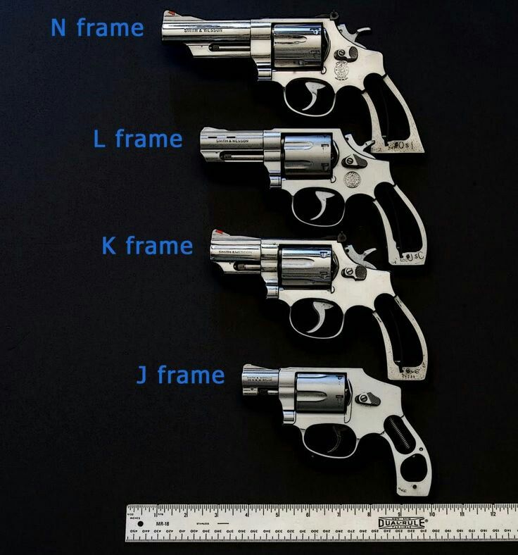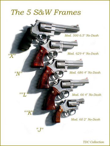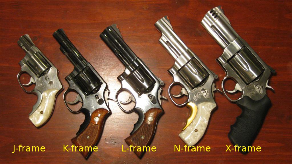 Revolverele Smith & Wesson sunt construite pe baza a catorva platforme standard (eng: “frames“) pentru corpul/cadrul revolverului. Pentru revolverele moderne, tip hand ejector la care cilindrul basculeaza in partea stanga, iar tuburile goale se ejecteaza prin actionarea manuala a tijei de ejectare, platformele principale sunt J, K, L, N, dar mai exista pe langa acestea si doua mai mici M, I, si doua mai mari X, Z. Aici nu ne intereseaza lungimea tevii, daca cuiul catare sau inaltatorul sunt reglabili (adjustable sights) sau nu (fixed sights), sau daca partea de jos a manerului este de forma patrata (square but) sau rotunjita (round but) sau daca cocosul este ascuns sau nu (shrouded/exposed hammer). Tot ce ne intereseaza este marimea cadrului (frame size). Informatiile prezentate sunt sintetizate din mai multe surse (vezi bibliografie), dar cea mai importanta este a IV-a editie a cartii Standard Catalog of Smith & Wesson.