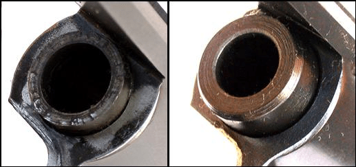 Problema cu K frame era ca nu se putea trage o cantintate mare de cartuse .357 Magnum pentru ca exista posibilitatea de a se crapa conul de fortare. Datorita acestei probleme a fost dezvoltata platforma L frame, care a rezolvat cu succes acest neajuns. Diferenta dintre conurile de fortare de la L frame si K frame atat la grosimea lor cat si la faptul ca doar la L frame grosimea este constanta, iar la K are o taietura in partea de jos se poate vedea in aceasta imagine. Grosimea peretilor conului de fortare la L frame este mai mare decat la K frame mai ales daca comparam cu modelele mai vechi construite pe K frame. De asemenea nu mai exista acea taietura in partea de jos unde la K frame era si mai subtire decat in restul conului. De asemenea peretii cilindrului sunt mai grosi. Toate aceste elemente fac din L frame o platforma mult mai solida si care poate sa faca fata la trageri exclusive cu .357 Magnum, fara ca dimensiunea generala a revolverului sa se modifice esential fara de K frame.
