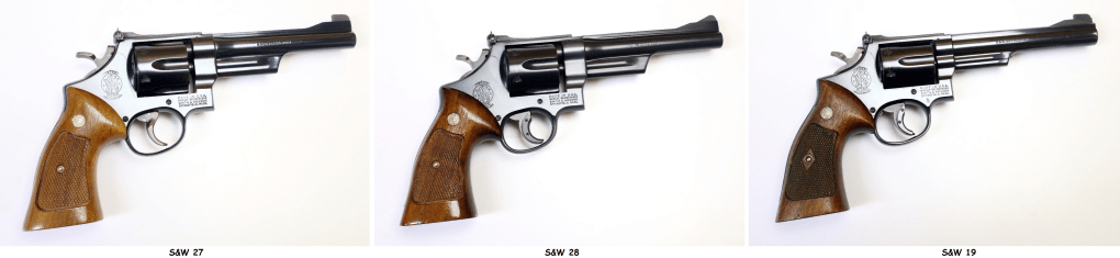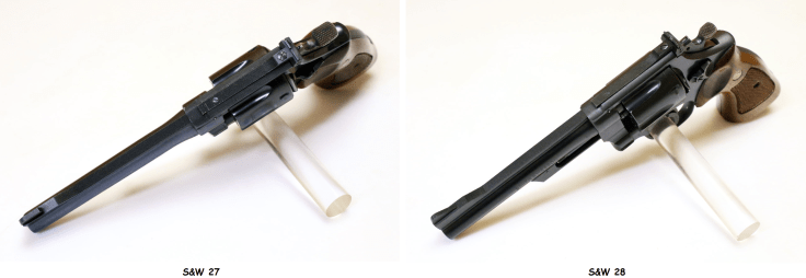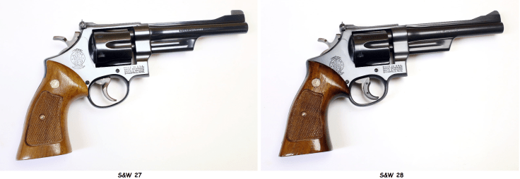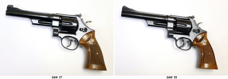 Model 28 (wiki) introdus in 1954 si cunoscut sub numele de Highway Patrolman este varianta mai putin rafinata si mai ieftina a lui model 27, dar care pastreaza toate caracteristicile tehnice ale originalului. Acest model a fost realizat pentru a fi o arma de serviciu (de unde si numele) si la care lipsesc unele detalii de finisare cum ar fi luciul brunajului si detaliile anti orbire de pe partea superioada a armei (vezi poza mai jos). Desi un revolver destul de greu, acest model a fost folosit de numeroase departamente de politie ca arma principala pentru aproximativ doua decenii.