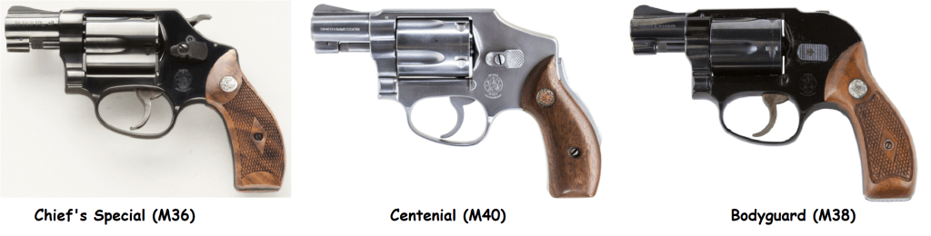 – Platformele revolverelor Smith & Wesson (J, K, L, N)