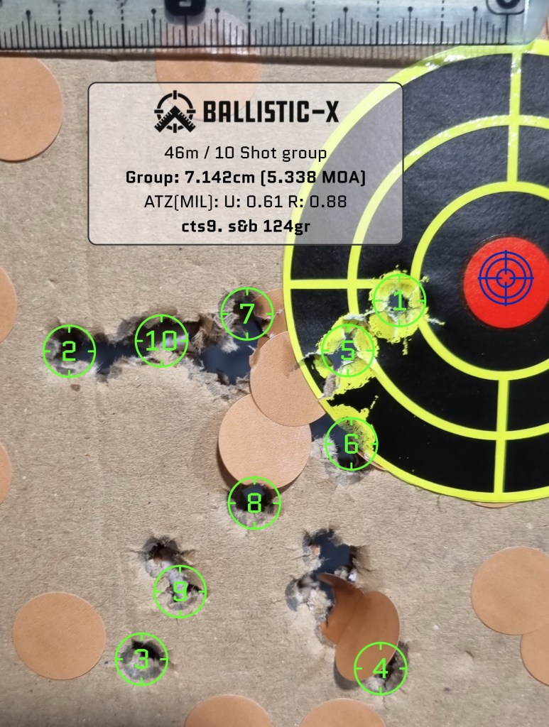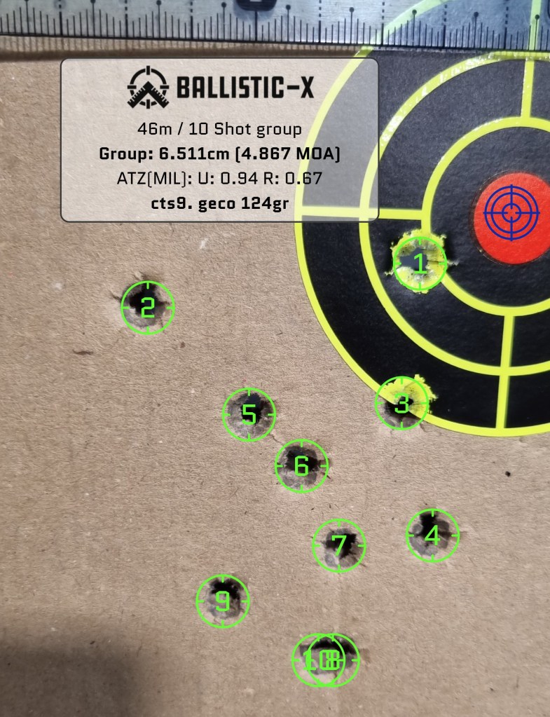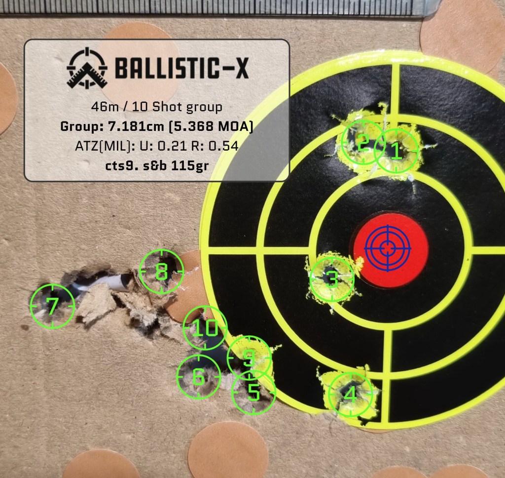 Am testat precizia la 50 yarzi – 46 metri cu mai multe tipuri de munitie. Precizia a fost intre aproximativ 9 MOA cu munitie ieftina Winchester si Blazer si sub 5 MOA cu munitie scumpa Seller&Bellot si Geco. E important sa gasesti munitia potrivita pentru arma ta.