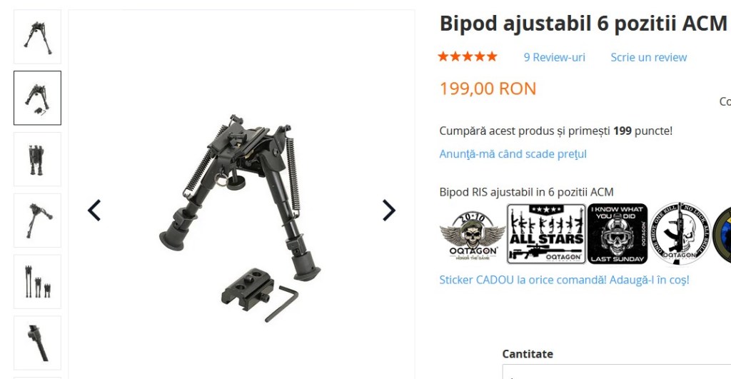 Deci clonele de bipod sunt ieftine dar au carente mari la mecanismele interne. Pentru inceput, ca sa invat cum se folosesc si sa imi dau seama ce imi trebuie, eu zic ca si-au atins scopul. Dar pentru o folosire serioasa pe o arma puternica, ar trebui cumparat un original scump.