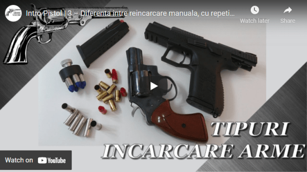 Continuam seriile Intro Pistol si Intro Revolver dedicate incepatorilor, cu prezentarea diferentei intre reincarcarea manuala a fiecarui cartus adica arme cu o singura lovitura, reincarcare cu repetitie, reincarcare semi-automata si reincarcare automata.